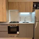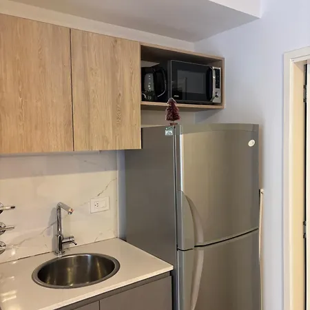 A fully furnished kitchen at Exclusivo Monoambiente Centro Pichincha Ubicacion Perfecta Apartment is equipped with a fridge and an oven for guests' needs. Exclusivo Monoambiente Centro Pichincha Ubicacion Perfecta Apartment is also not far from Rosario Central rail station.